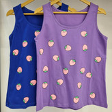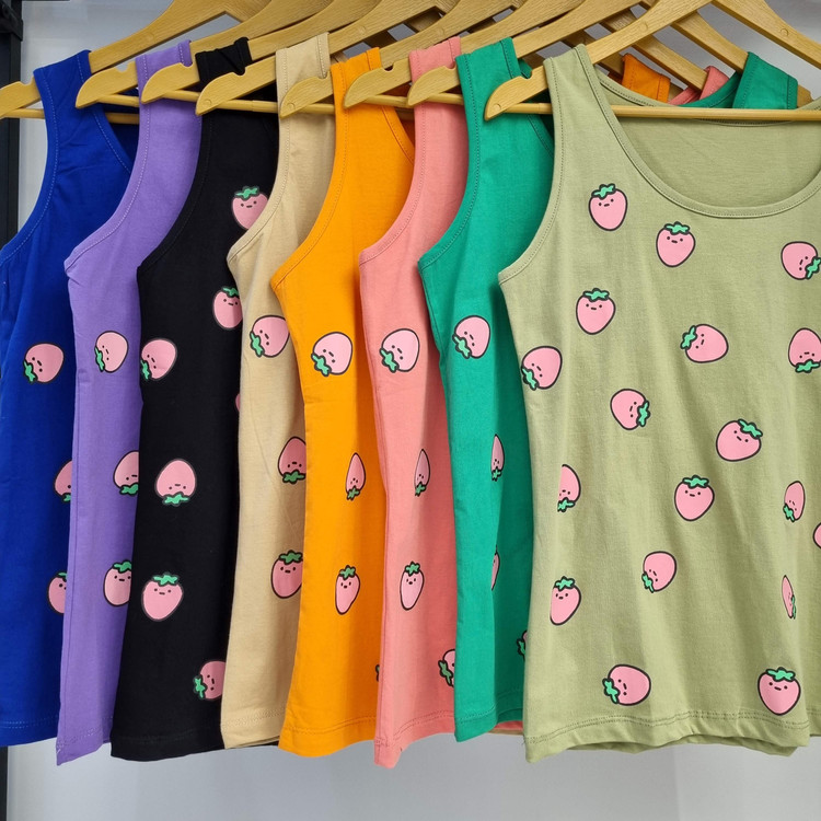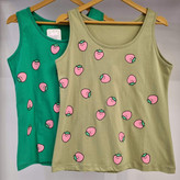 تاپ نخ پنبه زنانه طرح توت فرنگی