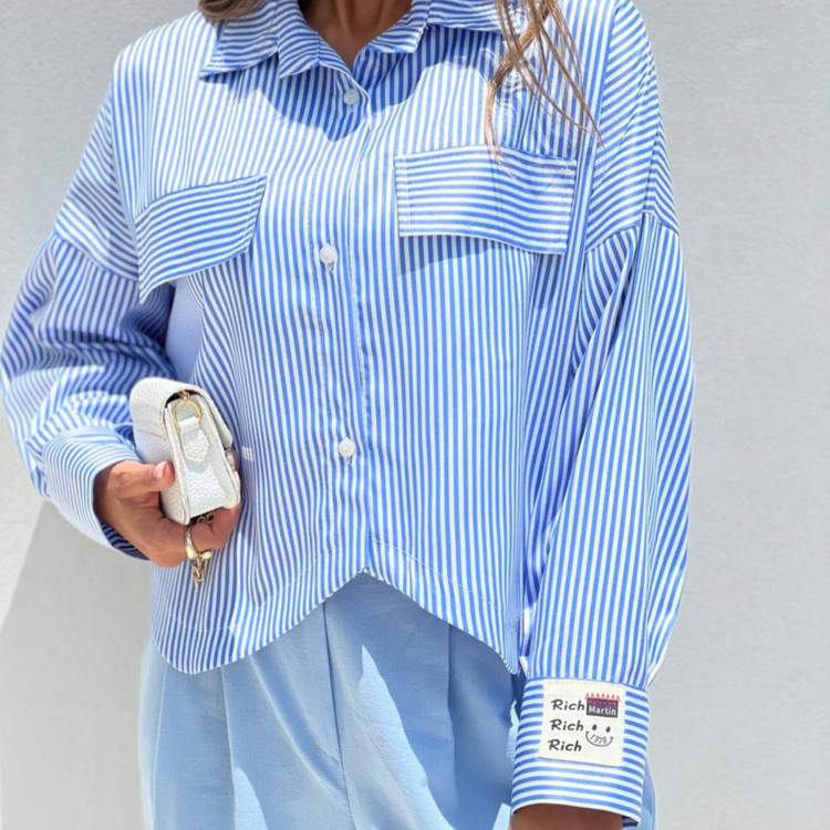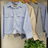 شومیز کوتاه راه راه زنانه جنس ساتن نخ