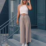 متاسفانه این کالا در حال حاضر موجود نیست. میتوانید از طریق لیست بالای صفحه، از محصولات مشابه این کالا دیدن نمایید.جنس لینن/ فری سایز/ پشت کمر کش/ جلو زیپ و دکمه/ دور کمر با کشسانی تا ۹۰/ دور ران ۶۰/ دور باسن ۱۱۰/ قد ۹۴