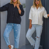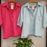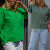 شومیز مانتویی کوتاه زنانه لینن یقه هفت