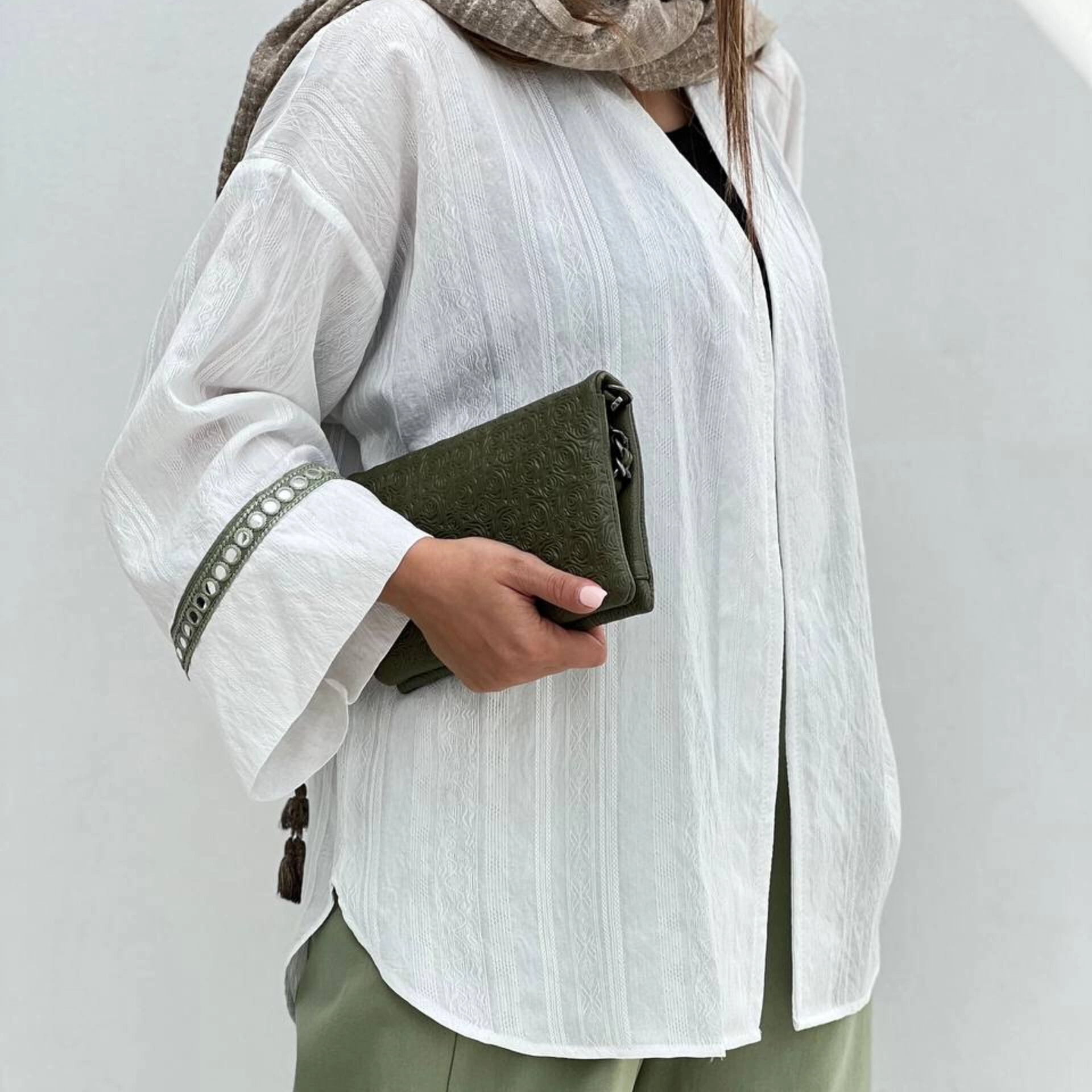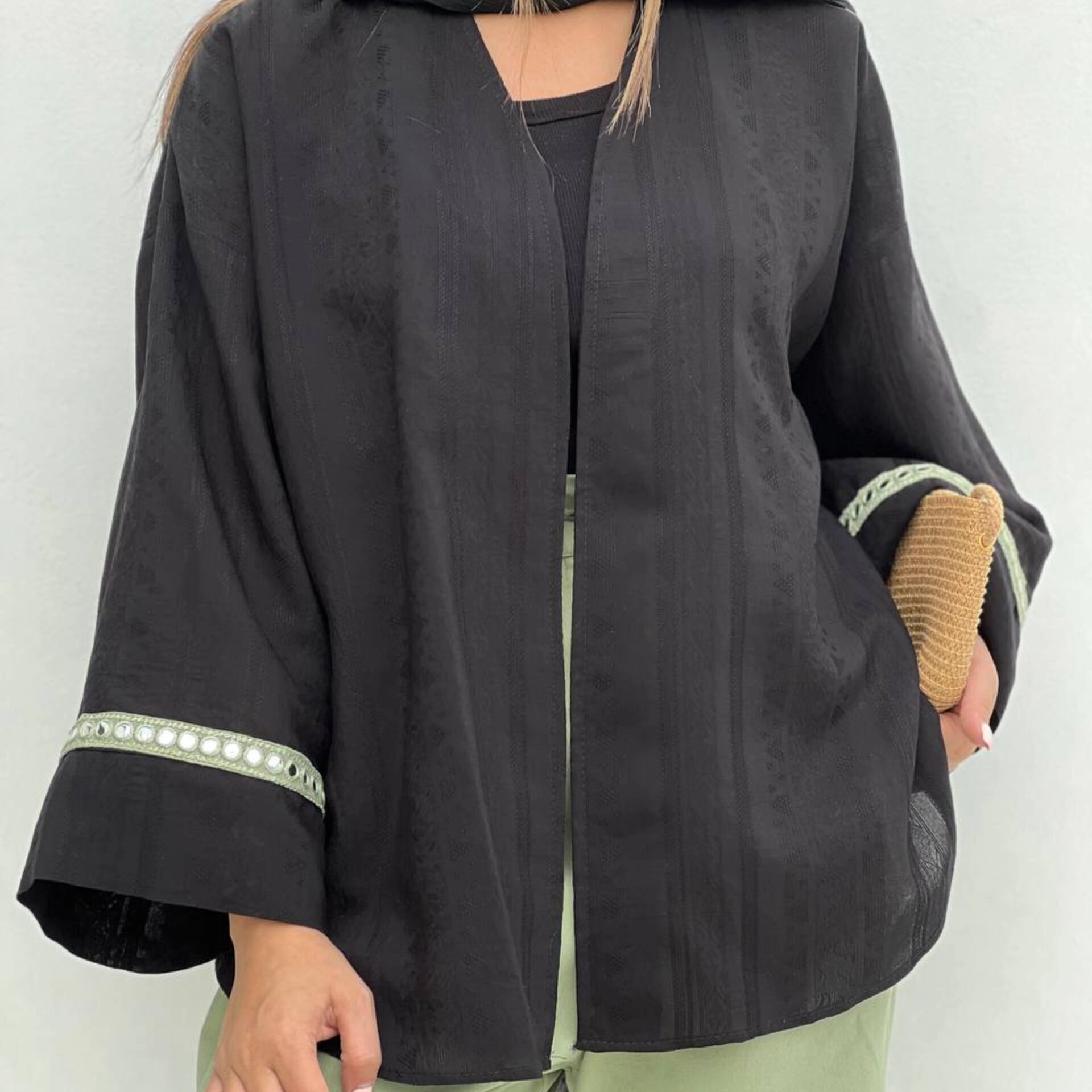 مانتو زنانه جلو باز نخ آستین گیپور