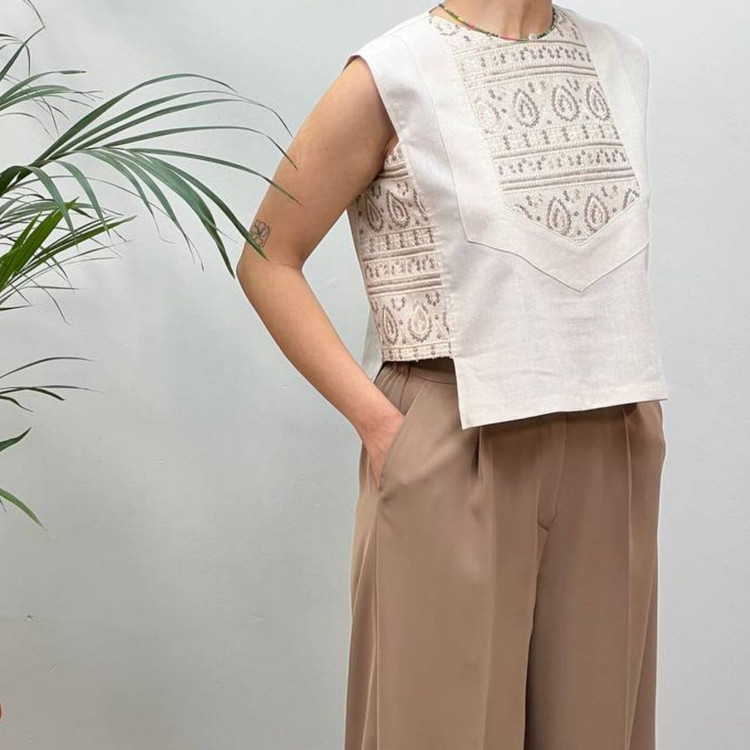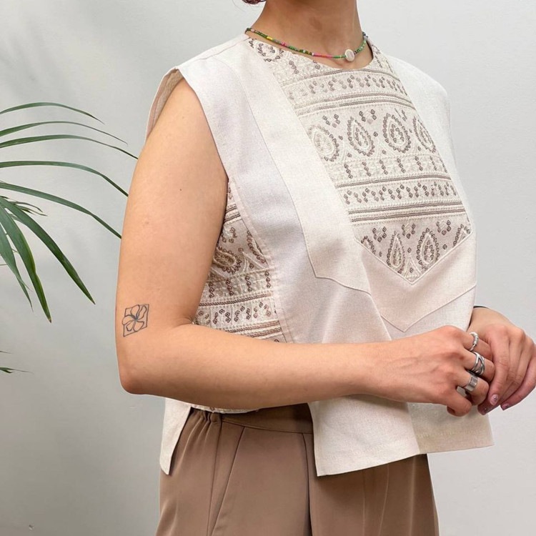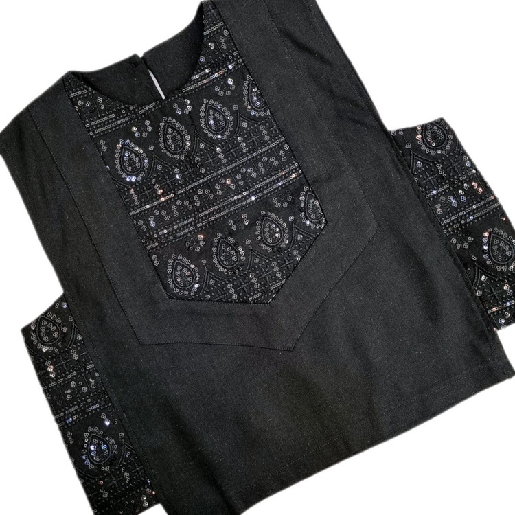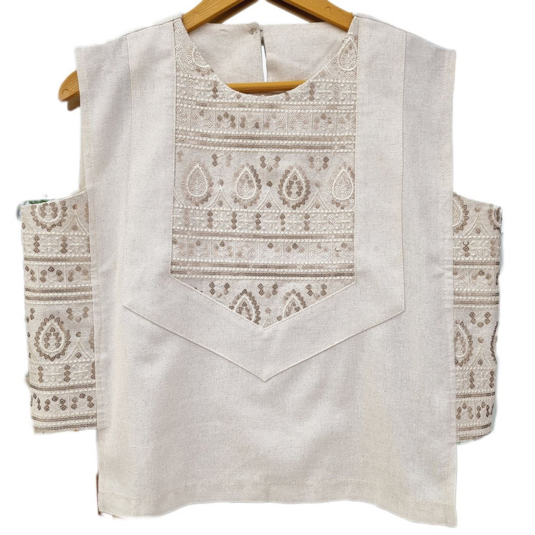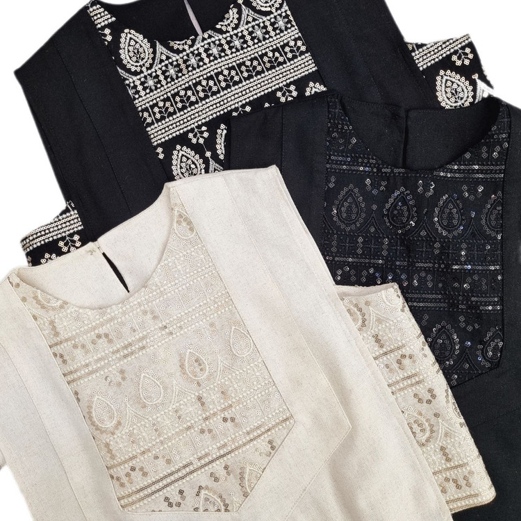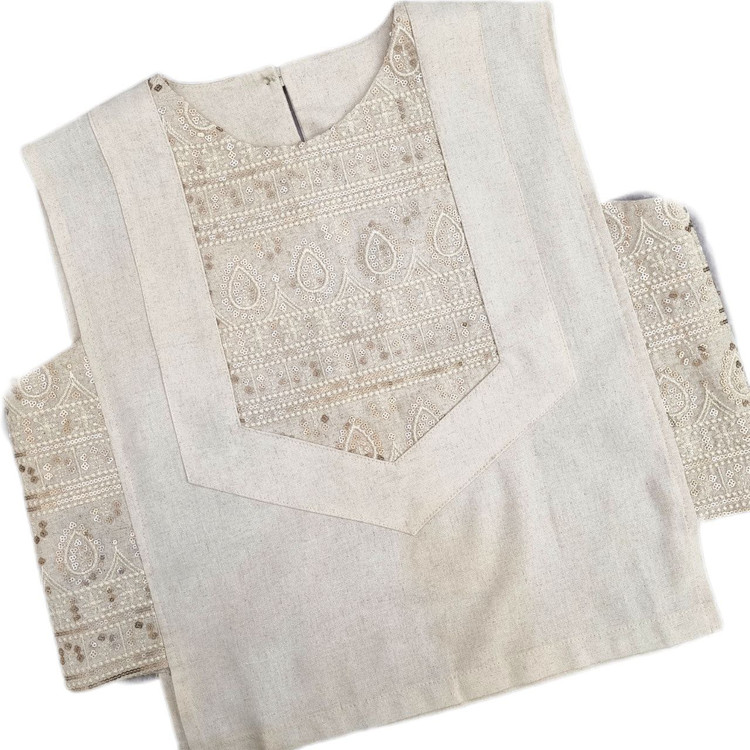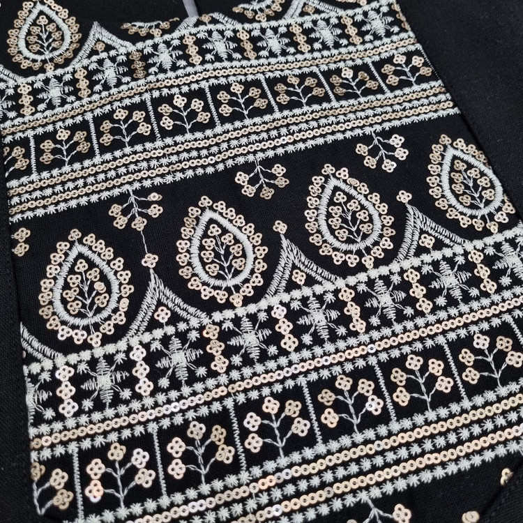 جنس لینن با خرجکار هندی، سوزندوزی و پولک دوزی