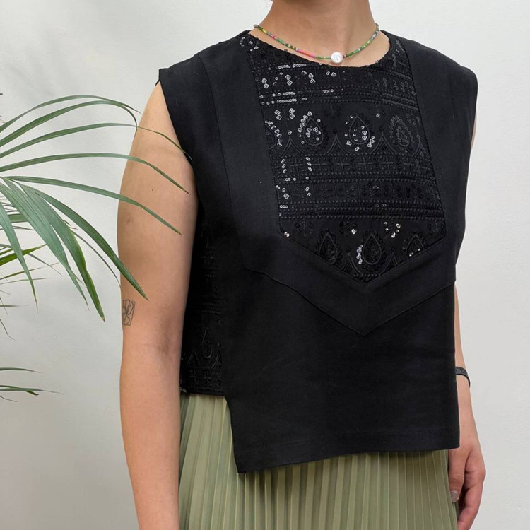 تاپ مجلسی زنانه سوزندوزی و پولک دوزی کد ۰۰۲۵