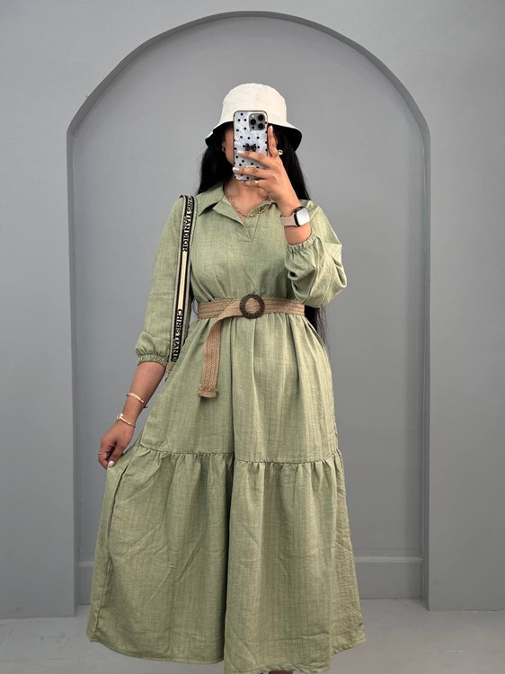 پیراهن ساحلی کفتان زنانه بلند چیندار کمربند دار کد ۰۰۲۷