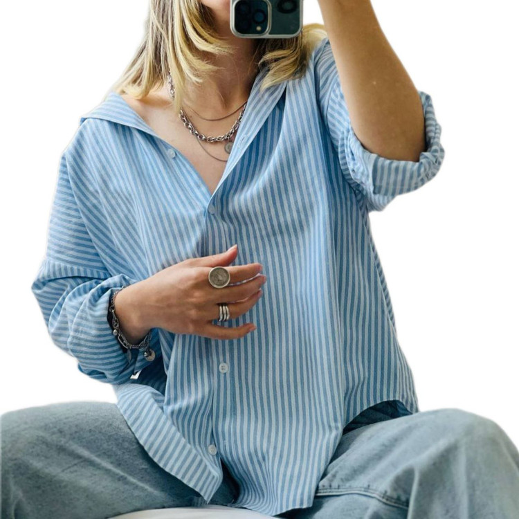 شومیز مانتویی راه راه زنانه خنک کد ۰۰۳۲