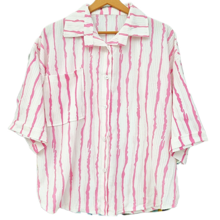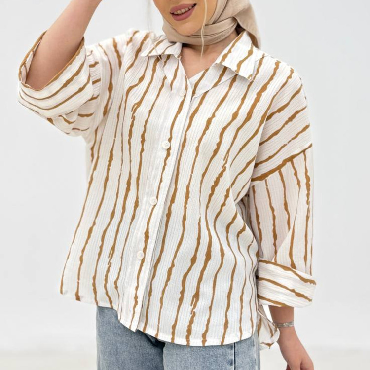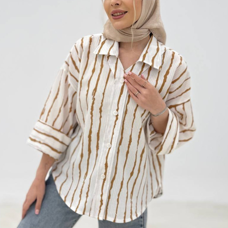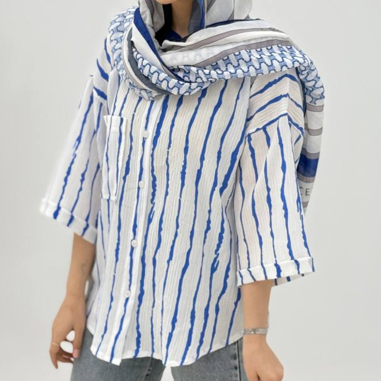 شومیز مانتویی زنانه راه راه جنس پری کد ۰۰۳۴