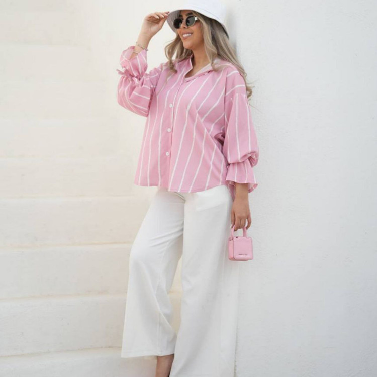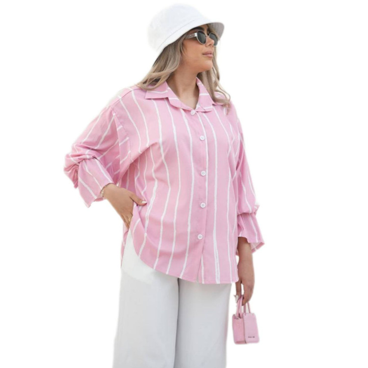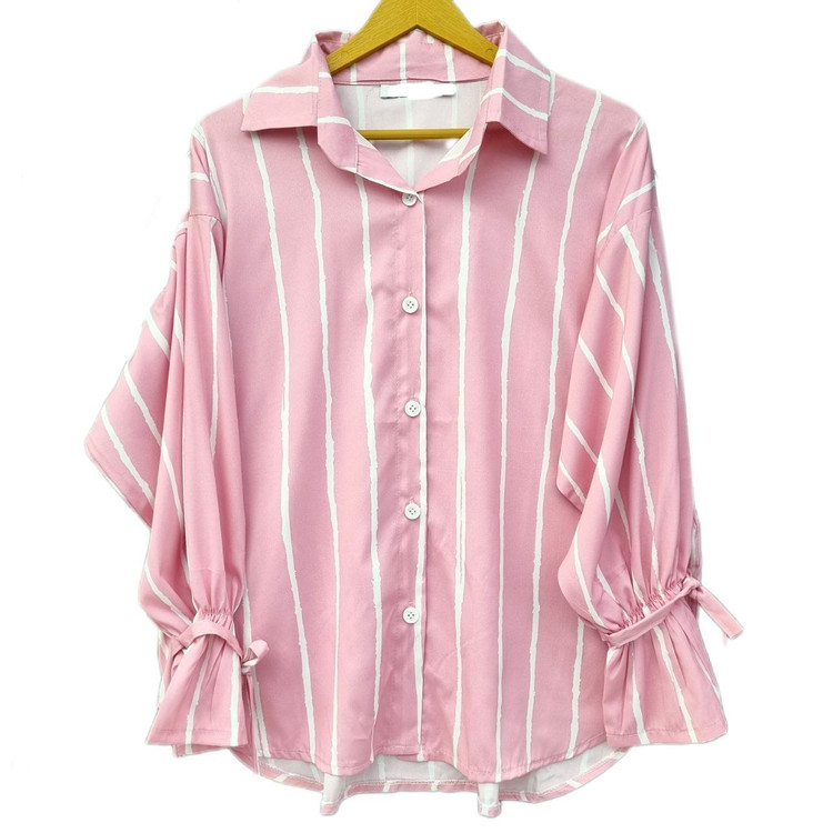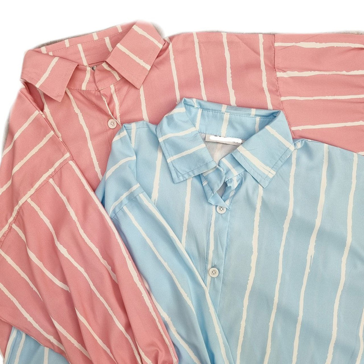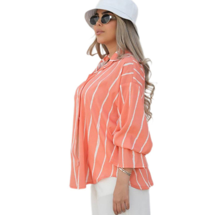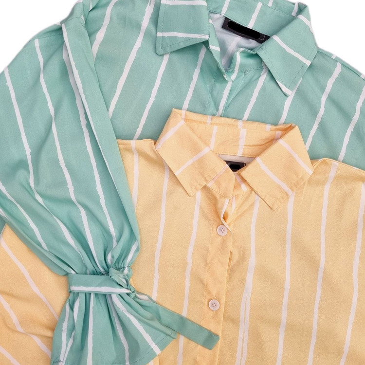 شومیز مانتویی زنانه راه راه جنس کرپ فلور خنک کد ۰۰۴۶